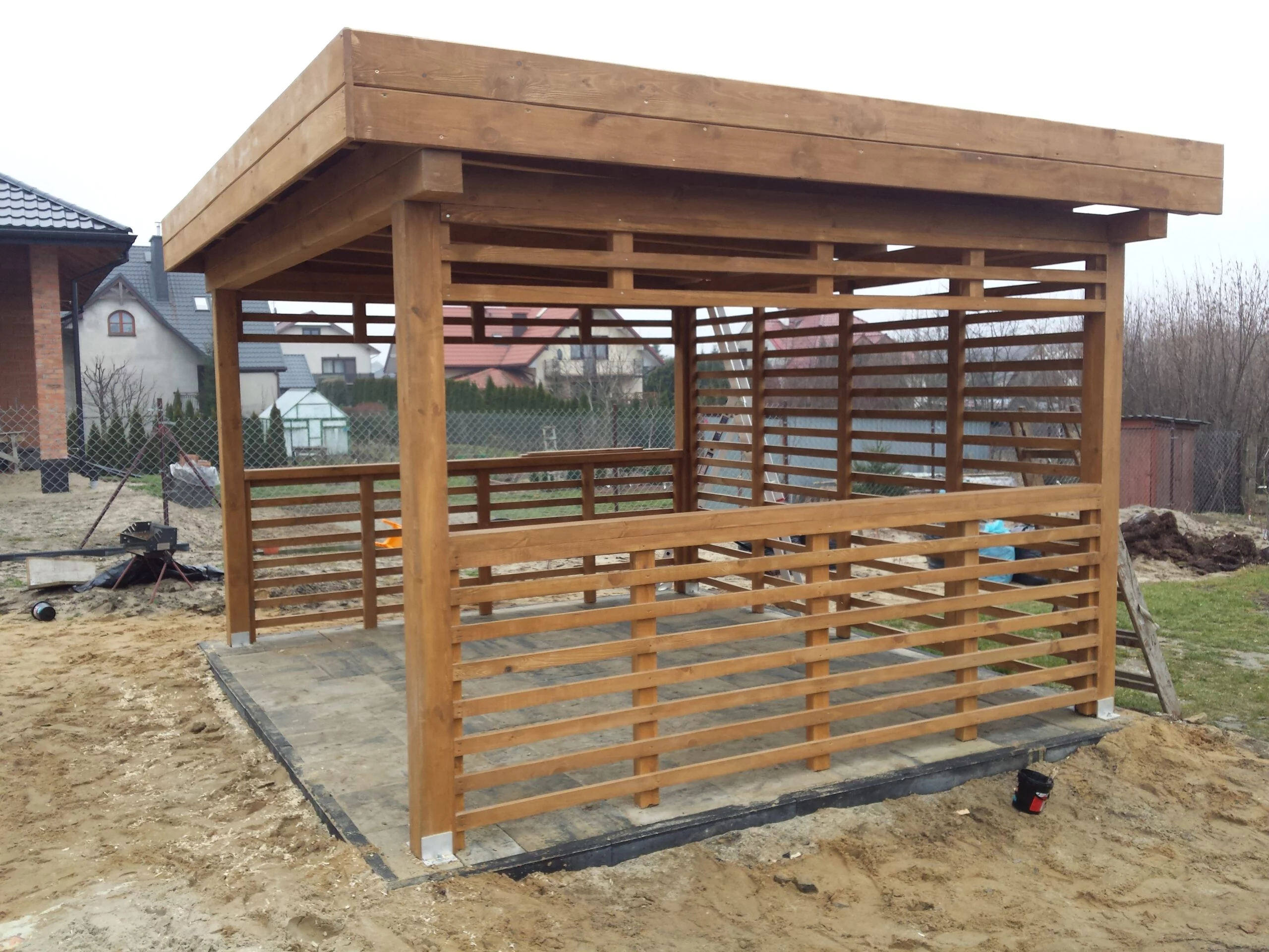 Montaż altany zaczyna się od trwałego podłoża lub bloczków betonowych, które zapewniają stabilną konstrukcję. W razie potrzeby oferujemy także wykonanie podłogi, dostosowanej do Twoich oczekiwań i stylu altany.